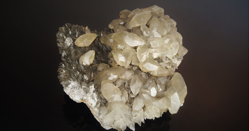 High-quality piece with beautiful translucent Dog Tooth Fluorescent Calcite Crystal Cluster.