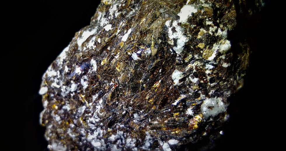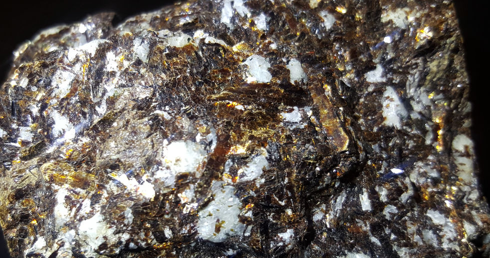 Bronze-bladed crystals of Astrophyllite embedded in a white feldspar.