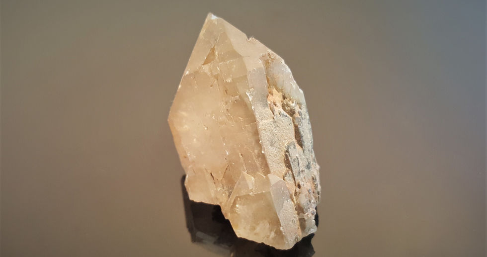 Mostly it is damage-free, but you will see a small scar in the top. The quartz is translucent, and a little red coated.
