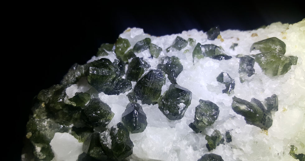 Beautiful specimen of green Diopside on snow-white Calcite. This was originally in my father's exhibition, but due to lack of space I am putting it up for sale.