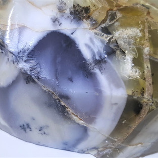 Dendritic agate is a translucent, colorless to whitish-gray variety of chalcedony quartz, easily distinguished by its distinct tree- or fern-like markings known as 'dendrites', which are most often brown to black in color The bands of this agate sometimes are filled with opals and for this reason sometimes this agate is called dendiritic opal.