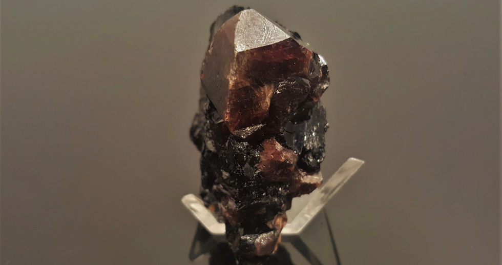 This specimen contains a big zircon crystal in Biotite. The visible part of the crystal is 25 mm, but in reality it is bigger as part of it is hidden by the Biotite.