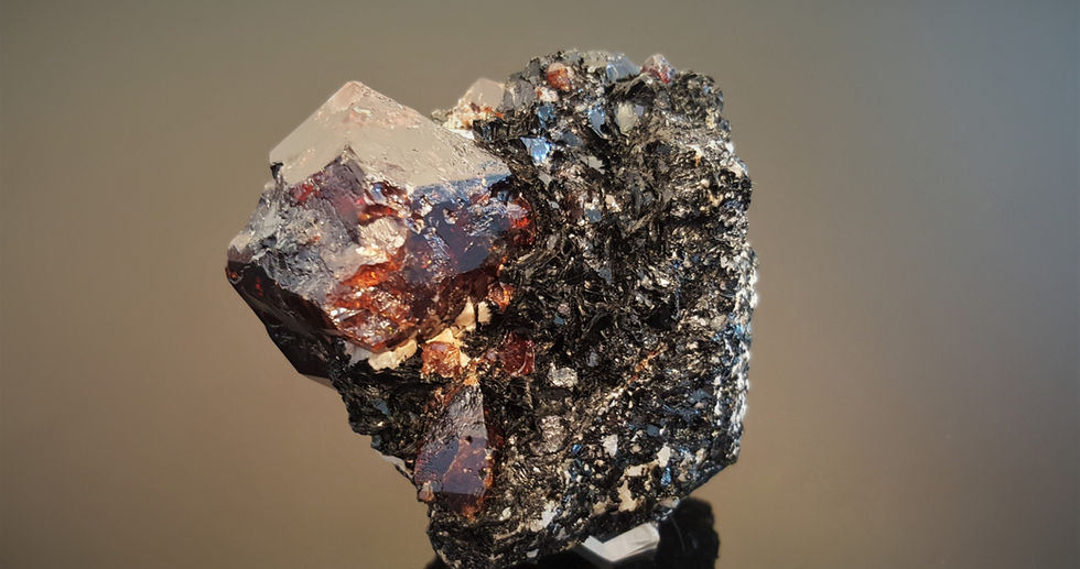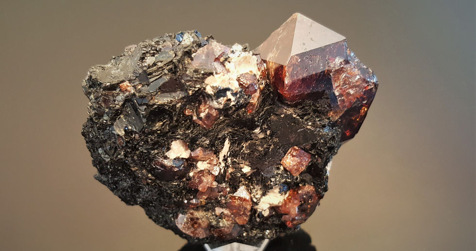 Here is a huge 33 mm zircon crystal in biotite. Actually, it is two crystals that are grown together, which you will see on one side of the crystal while the other side shows facets as one single crystal.